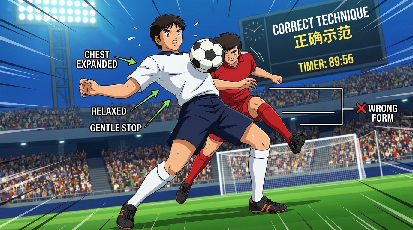 两种方式的共同关键点:收挺时机必须与球触胸同步,过早或过晚均会导致缓冲失效。