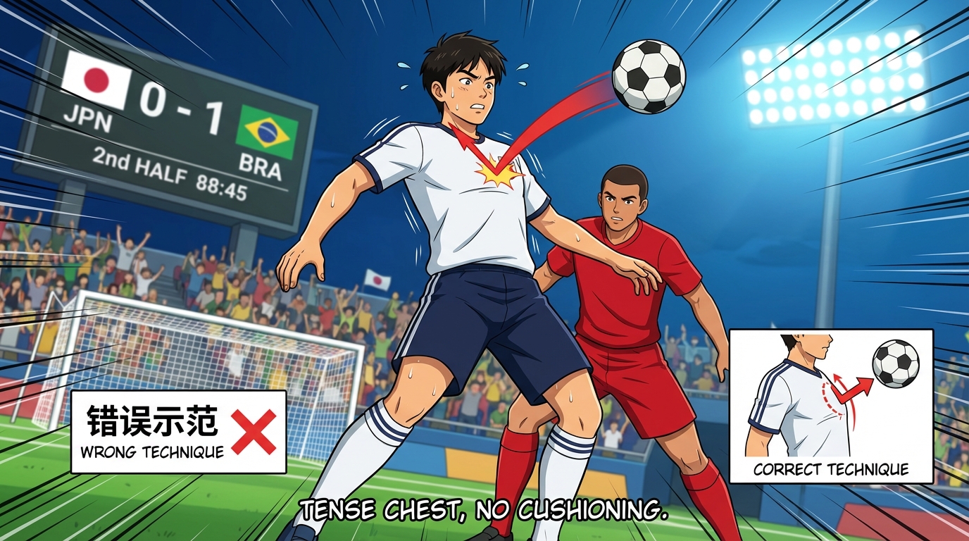 | 接球后球没停住就跑开 | 未能及时用脚跟进控球 | 强调胸部停球后必须立即移步用脚接管球 |